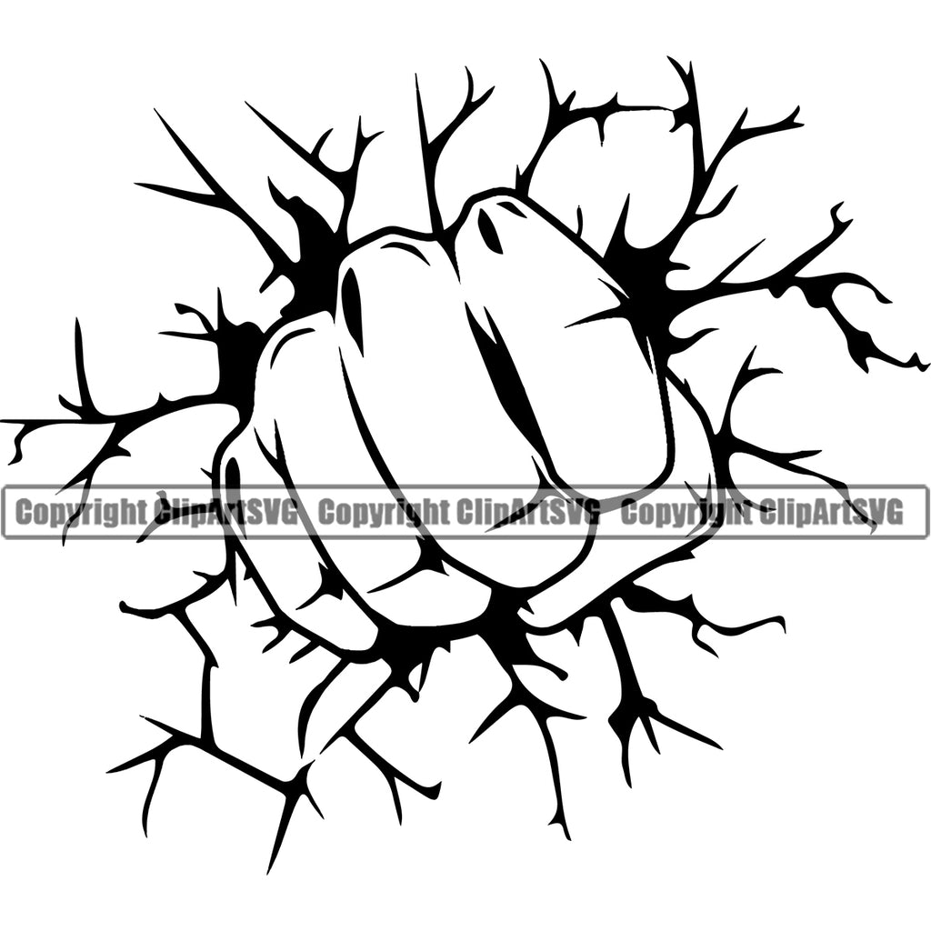 Hand Punch Break Wall Design Element Fist Finger Gesture Hold Holding Grab Grabbing Object Mascot Creation Create Art Artwork Creator Business Company Logo Clipart SVG