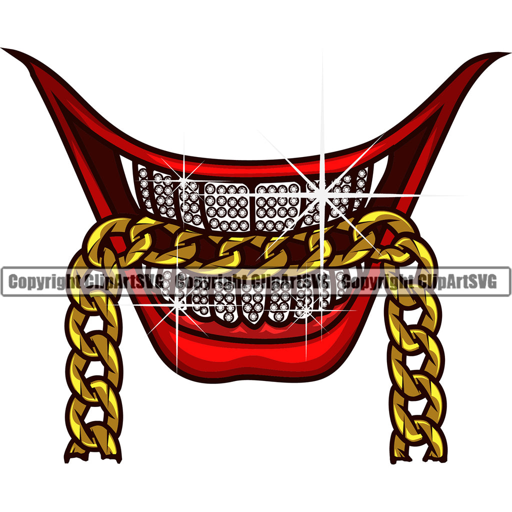 Lips Diamond Mouth Bite Biting Chain Design Element Face Sexy Mouth Position Head Cartoon Character Mascot Creation Create Art Artwork Creator Business Company Logo Clipart SVG