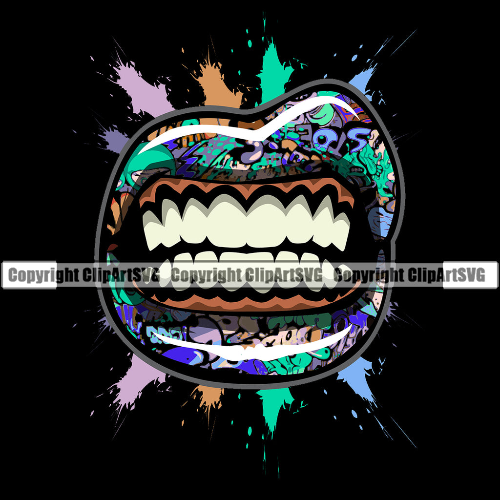 Lips Colorful Splash Splatter Drip Dripping Woman Female Girl Lady Colorful Black Background Design Element Sexy Mouth Position Head Cartoon Mascot Creation Create Art Creator Business Company Logo Clipart SVG