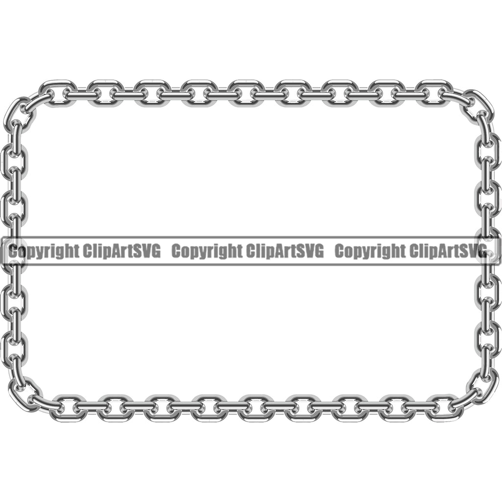 Metal Chain Link Oval Rectangle Design Element Silver Color Iron Connection Links Jewelry Connect Steel Safety Protection Security Strength Strong Textile Industry Concept Background Border Outline Sign Line Art Business Company Logo Clipart SVG