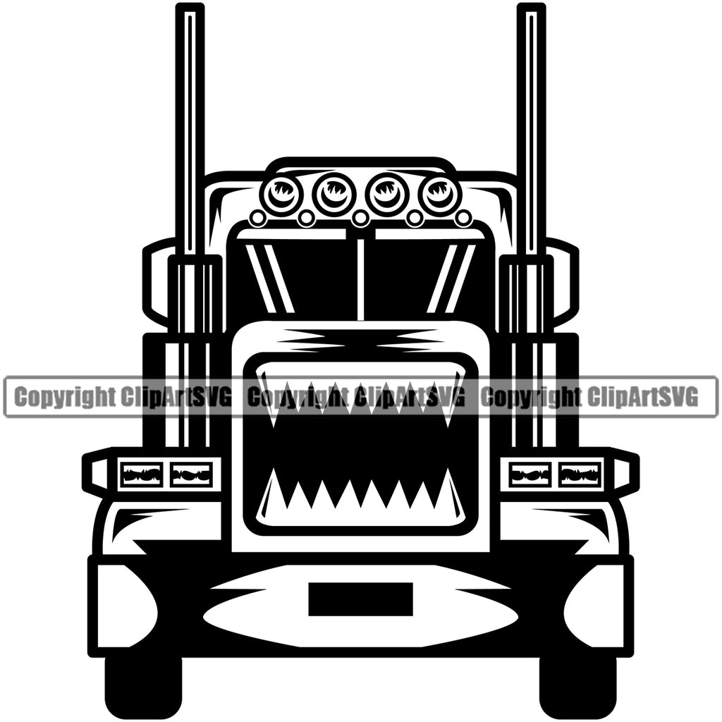 Transportation Truck Head Design Vehicle Move Moving Business Company Logo Trailer Big Rig 18 Wheeler Truck Driver Trucker Trucking Shipping Transport Cargo Clipart SVG