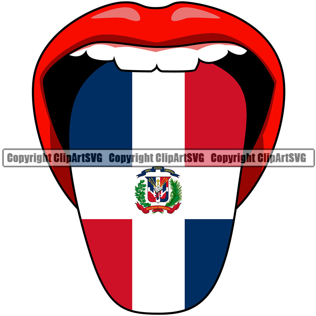 Country Map Nation National Dominican Republic Flag Red Color Lip Tongue Color Design Element Emblem Latino Latina Spanish Caribbean Island Symbol Icon Global Official Sign Logo Clipart SVG