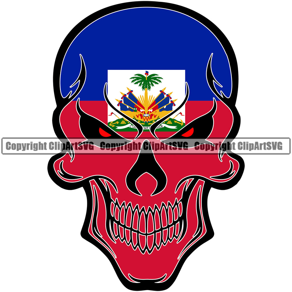 Country Map Nation National Haiti Haitian Skull Skeleton Red Face Design Element Smile Face Flag Emblem Badge Symbol Icon Global Official Sign Logo Clipart SVG