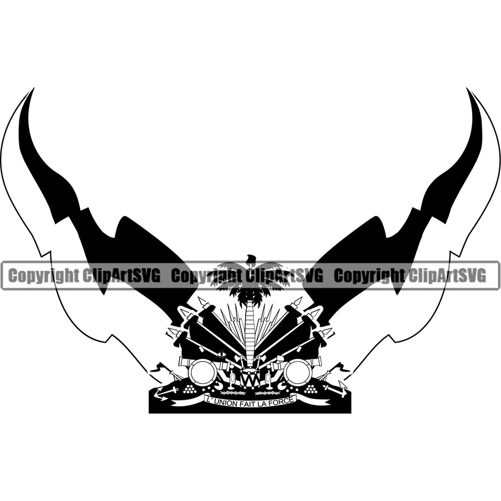Country Map Nation National Haiti Haitian Symbol Wings Design Element Black Color Flag Emblem Badge Icon Global Official Sign Logo Clipart SVG
