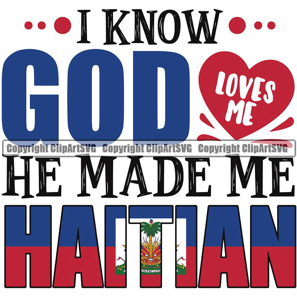 Country Map Nation National Haiti I Know God Loves Me He Made Me Color Quote Design Element Haitian Flag Emblem Badge Symbol Icon Global Official Sign Logo Clipart SVG