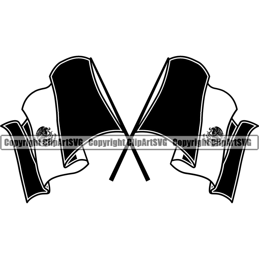Country Map Nation National Mexico Flag Pole Wavy Crossed Design Element Emblem Badge Mexican Latin Latino Spanish Caribbean Island Icon Global Official Sign Logo Clipart SVG