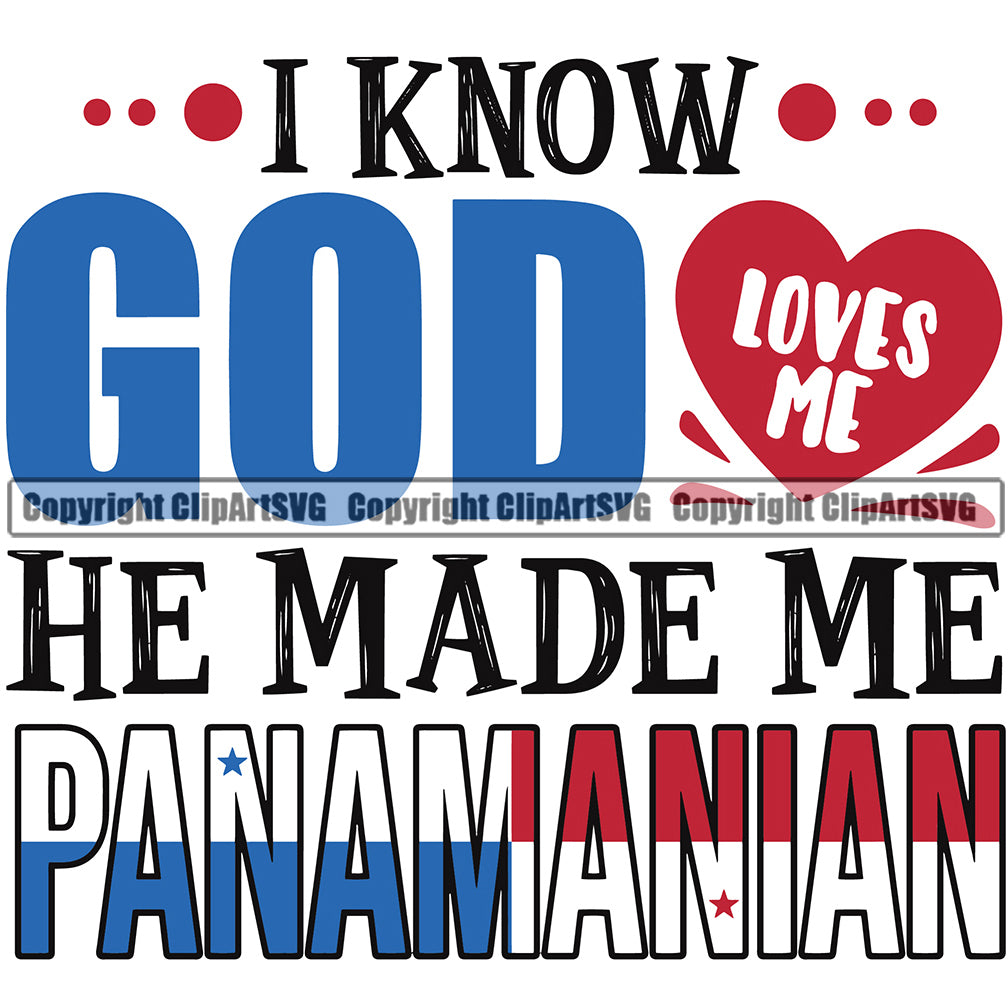 Country Map Nation National Panama I Know God Loves Me He Made Me Panamanian Quote Design Element Color Flag Emblem Badge Symbol Icon Global Official Sign Logo Clipart SVG