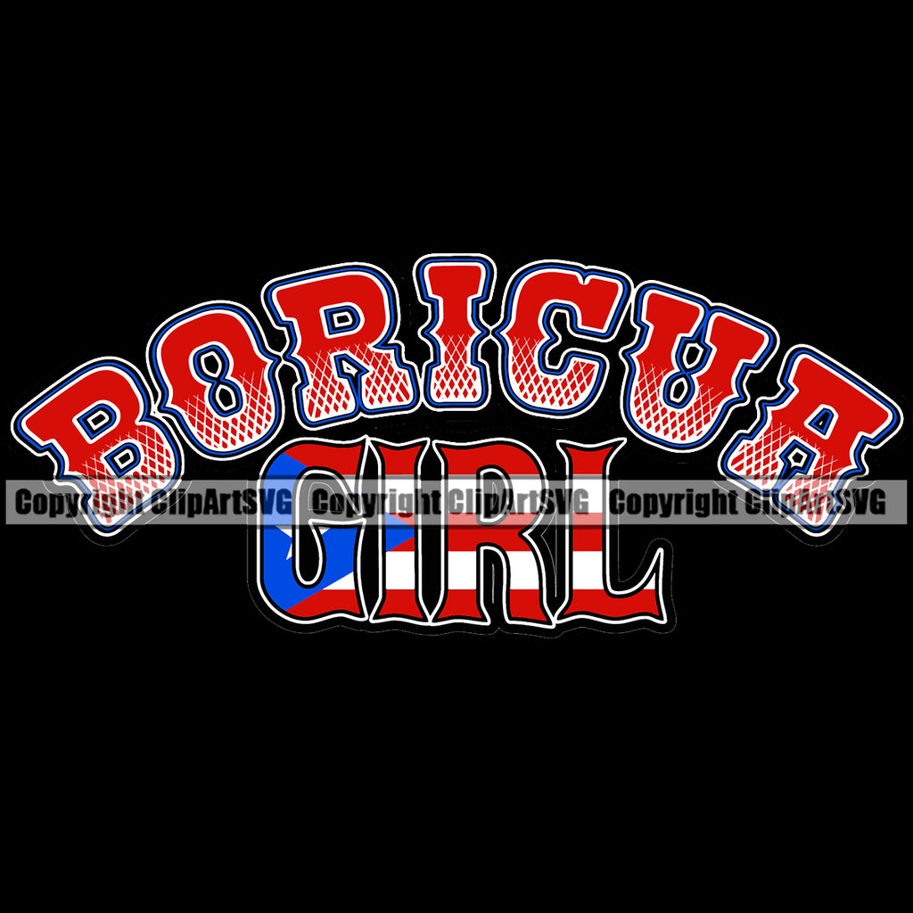 Country Map Nation National Puerto Rico Boricua Girl Black Background Red Color Quote Design Element Flag Emblem Badge Symbol Icon Latin Latino Latina Spanish Caribbean Island Rico Global Official Sign Logo Clipart SVG