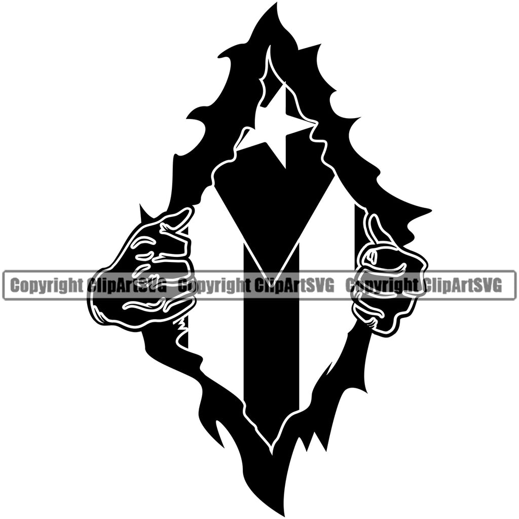 Country Map Nation National Puerto Rico Flag Emblem Badge Hand Hands Rip Ripping Pull Shirt Hole Rican Symbol Latin Latino Latina Design Element Spanish Caribbean Island Icon Global Official Sign Logo Clipart SVG