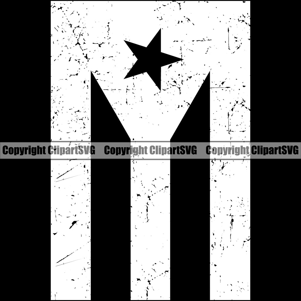Country Map Nation National Puerto Rico Flag Wavy Shinny Black Color Design Element Badge Rican Symbol Latin Latino Latina Spanish Caribbean Island Icon Global Official Sign Logo Clipart SVG