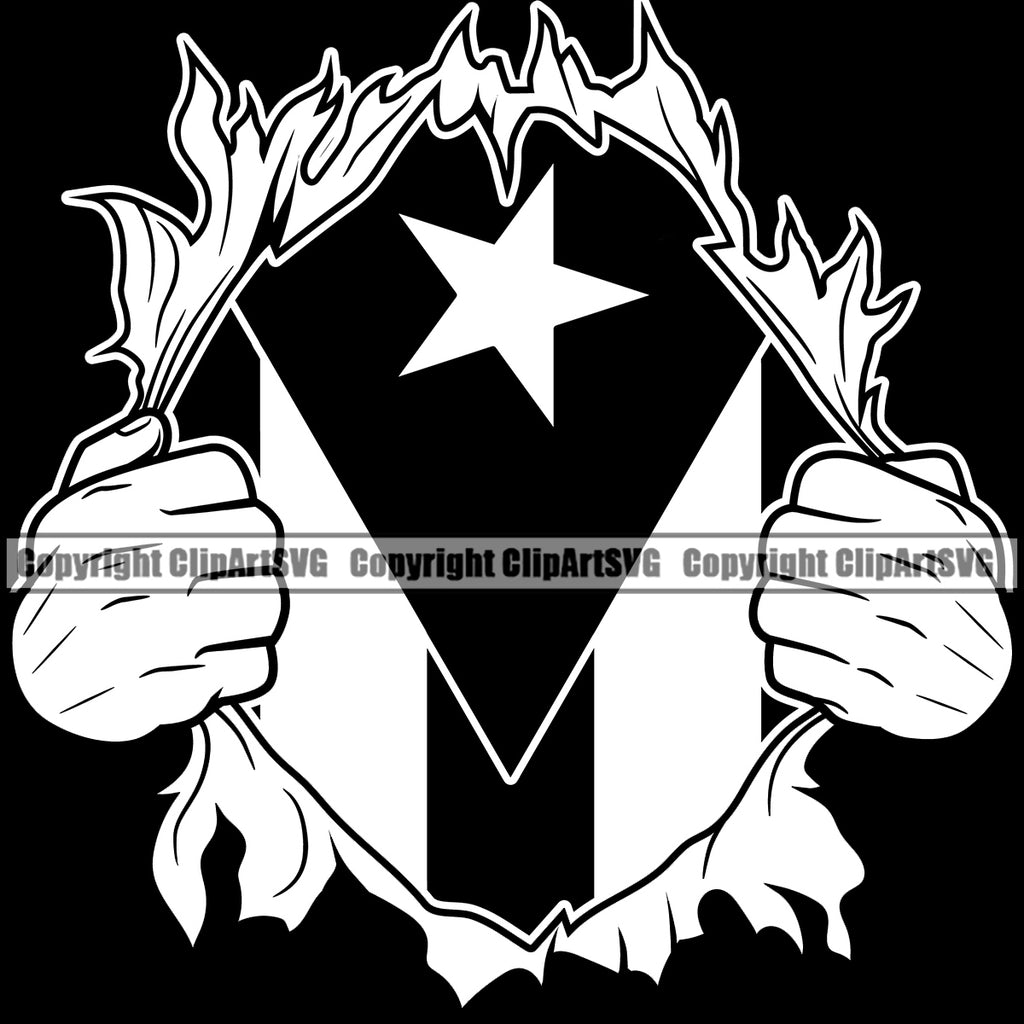 Country Map Nation National Puerto Rico Hand Hands Rip Ripping Open Shirt Design Flag Black Background Emblem Badge Rican Symbol Latin Latino Latina Official Sign Spanish Caribbean Island Icon Global Clipart SVG