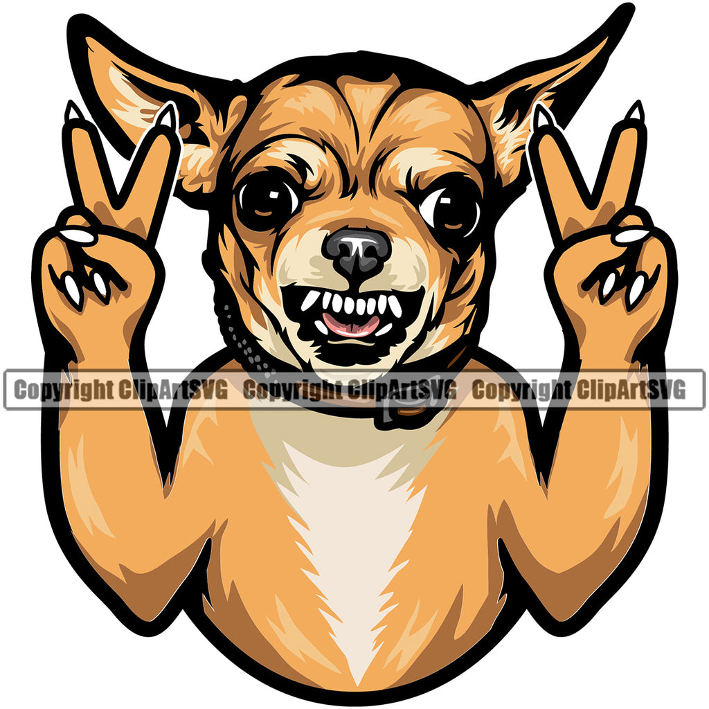 Chihuahua Dog Peace Hand Sign Puppy Head Purebred Pup Pedigree Color Canine K9 Animal Portrait Clipart SVG