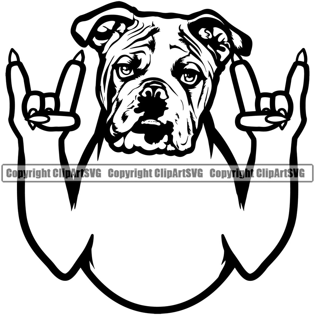 English Bulldog Rock And Roll Hand Sign Design Puppy Head Purebred Pup Pedigree Canine K-9 K9 Animal Clipart SVG