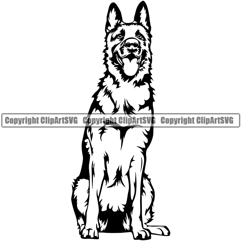 German Shepherd Dog Sitting Puppy Head Purebred Pup Pedigree Mascot Canine K-9 K9 Animal Portrait Clipart SVG