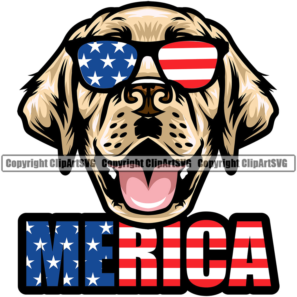 Labrador Retriever Dog Wearing Sunglasses With Merica Text Design Element Purebred Pedigree Canine K-9 K9 Animal Portrait Doggy Head Clipart SVG