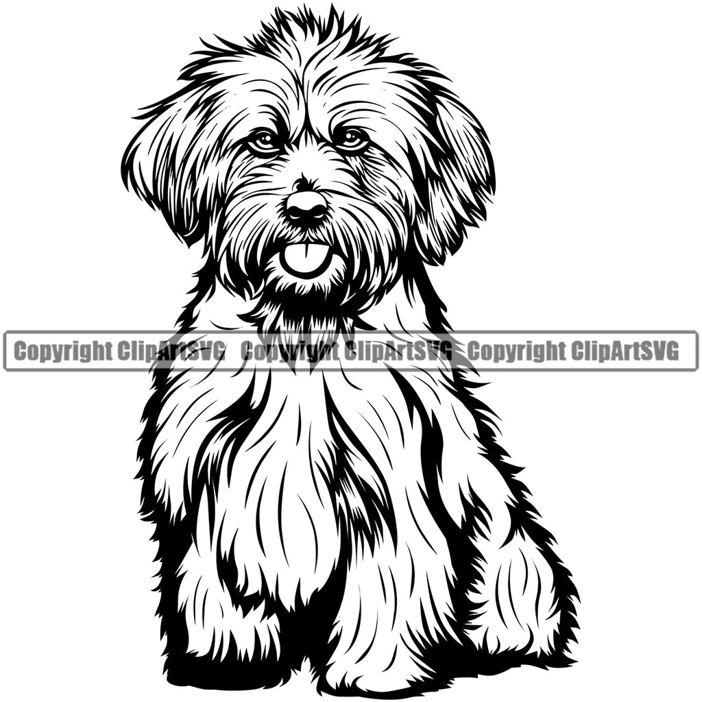 Lhasa Apso Sitting Dog Design Element Pedigree Canine K-9 K9 Portrait Doggy Cute Face Animal Puppy Pup Head Vector Clipart SVG