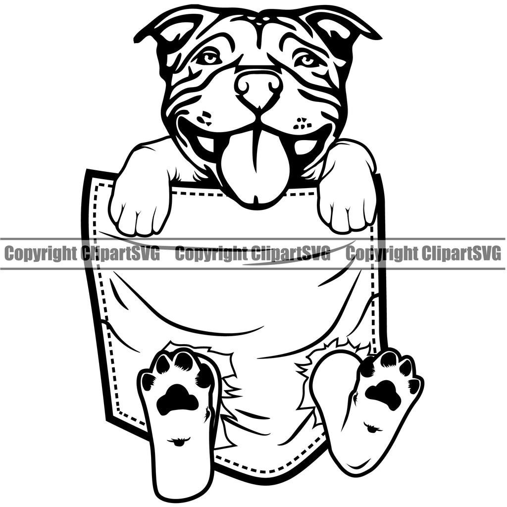 Pit Bull Dog Dog Hanging From Shirt Pocket Tshirt T-Shirt White Color Smile Face Design Puppy Pup Head Purebred Pedigree Canine K-9 K9 Animal Portrait Doggy Clipart SVG