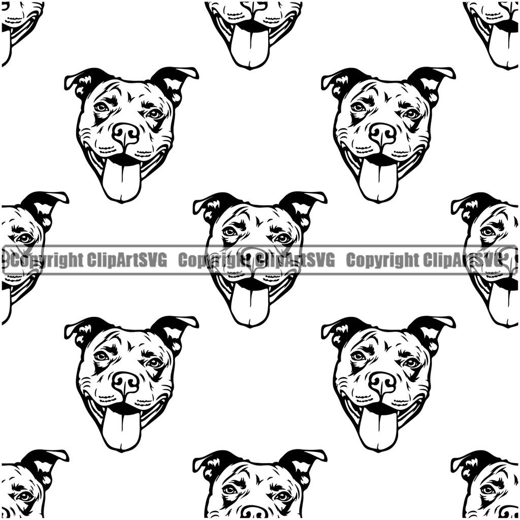Pit Bull Dog Seamless Design Element Puppy Pup Head Purebred Pedigree Canine K-9 K9 Animal Portrait Doggy Vector Clipart SVG