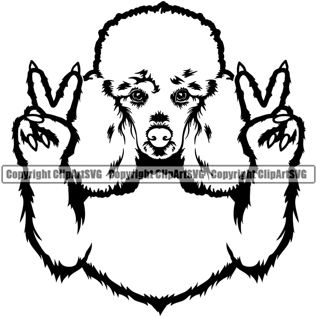 Poodle Dog Peace Hand Sign Cute Face Animal Design Pup Head Purebred Pedigree Canine K-9 K9 Portrait Doggy Puppy Smile Vector Clipart SVG
