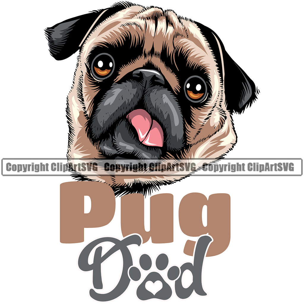 Pug Dad Dog With Color Text Design Element Puppy Pup Head Purebred Pedigree Canine K-9 K9 Animal Portrait Doggy Face Cute Clipart SVG