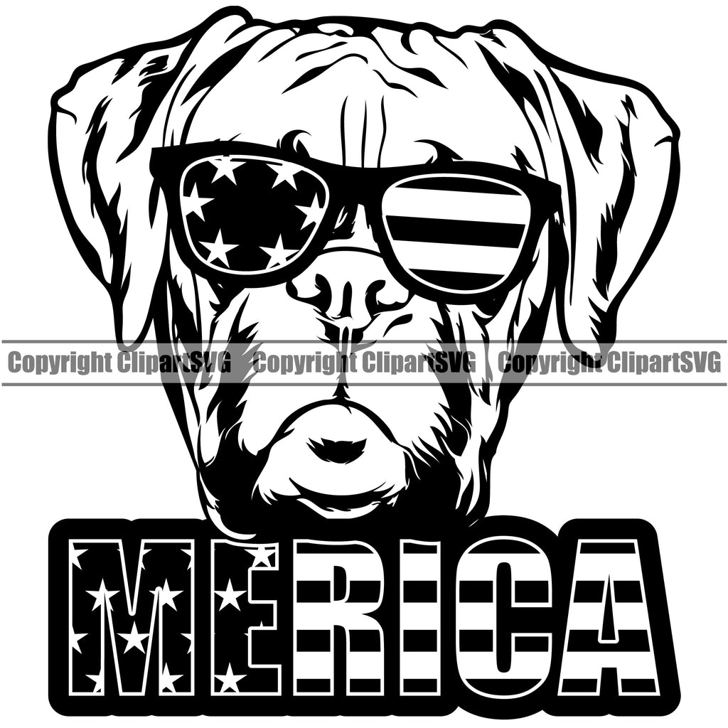 Wearing Sunglasses Merica Boxer Dog Portrait Face Cute Pup Breed Pedigree Doggy Clipart SVG