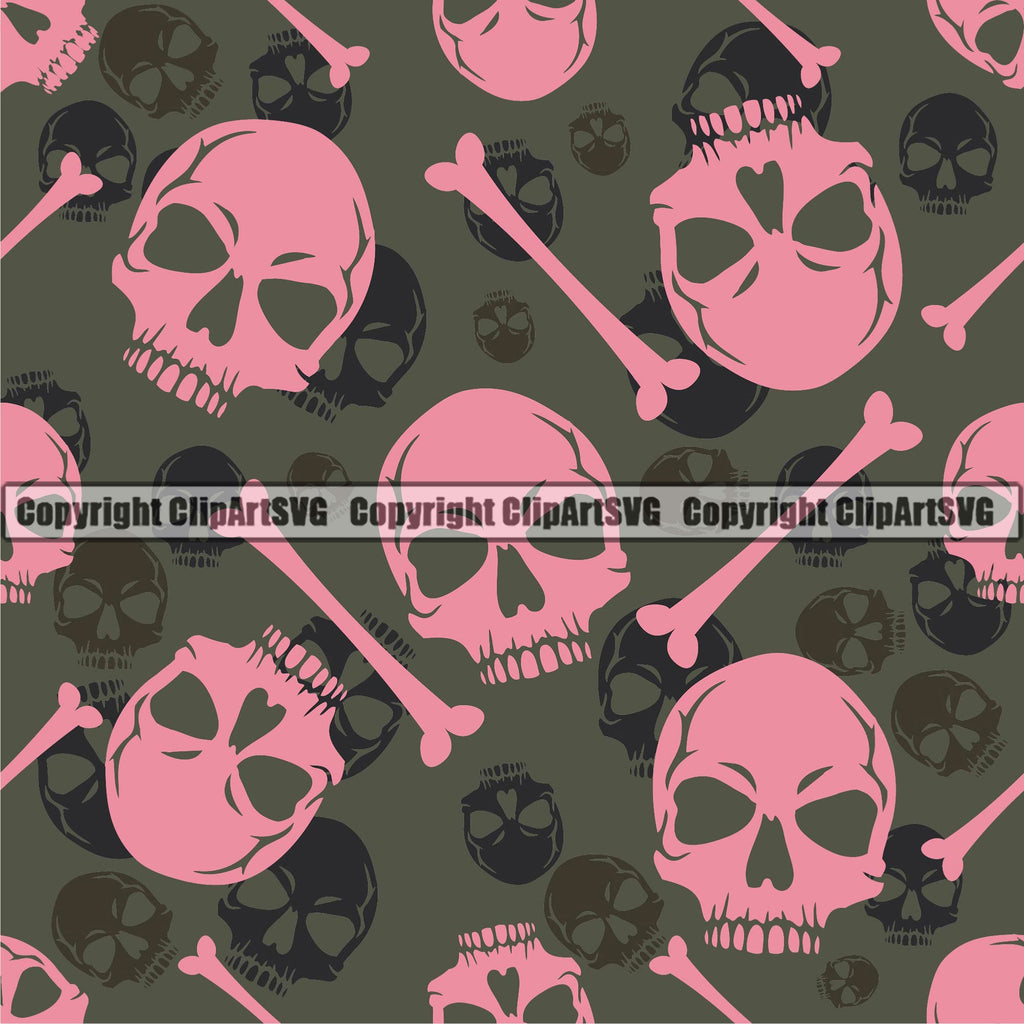 Scary Skull Skeleton Camo Camuflage Seamless Pattern Print Crossbones Pink And Green Camouflage Jungle War Wrap Cover Graphic Design Decor Logo