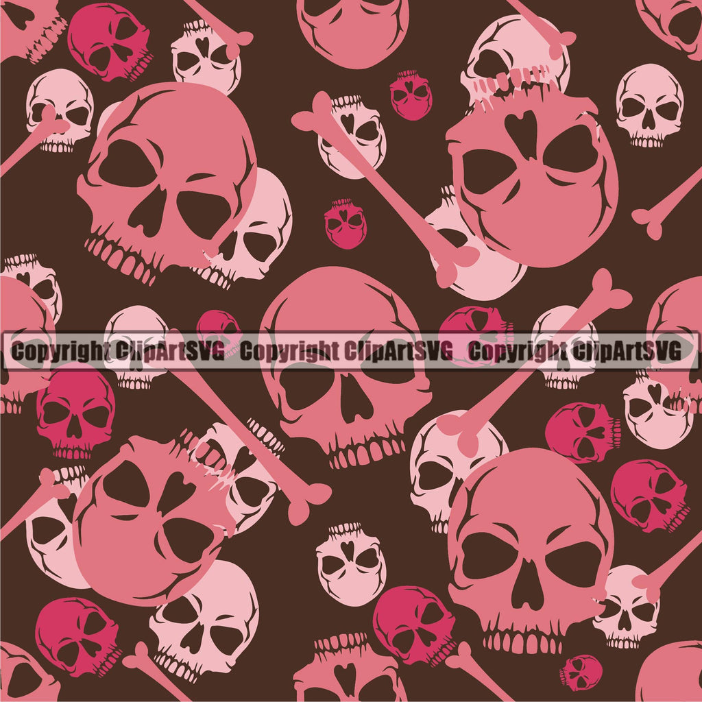 Scary Skull Skeleton Camo Camuflage Seamless Pattern Print Crossbones Pink And Light Camouflage Jungle War Wrap Cover Graphic Design Decor Logo