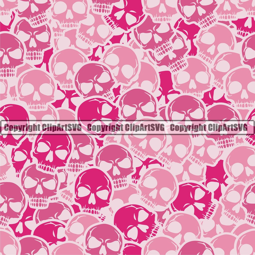 Scary Skull Skeleton Camo Camuflage Seamless Pattern Print Crossbones Pink Light White Camouflage Jungle War Wrap Cover Graphic Design Decor Logo