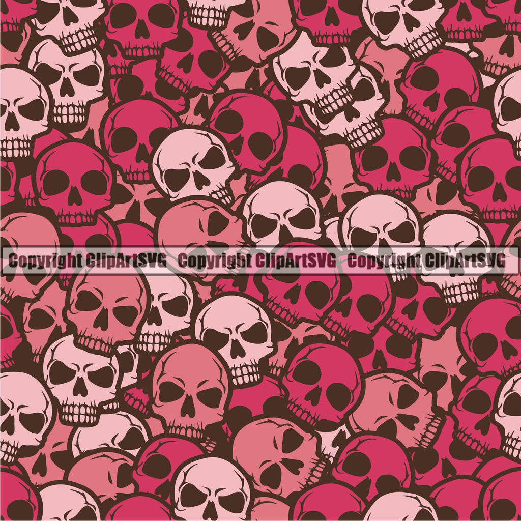 Scary Skull Skeleton Camo Camuflage Seamless Pattern Print Crossbones Pink White Hot Camouflage Jungle War Wrap Cover Graphic Design Decor Logo