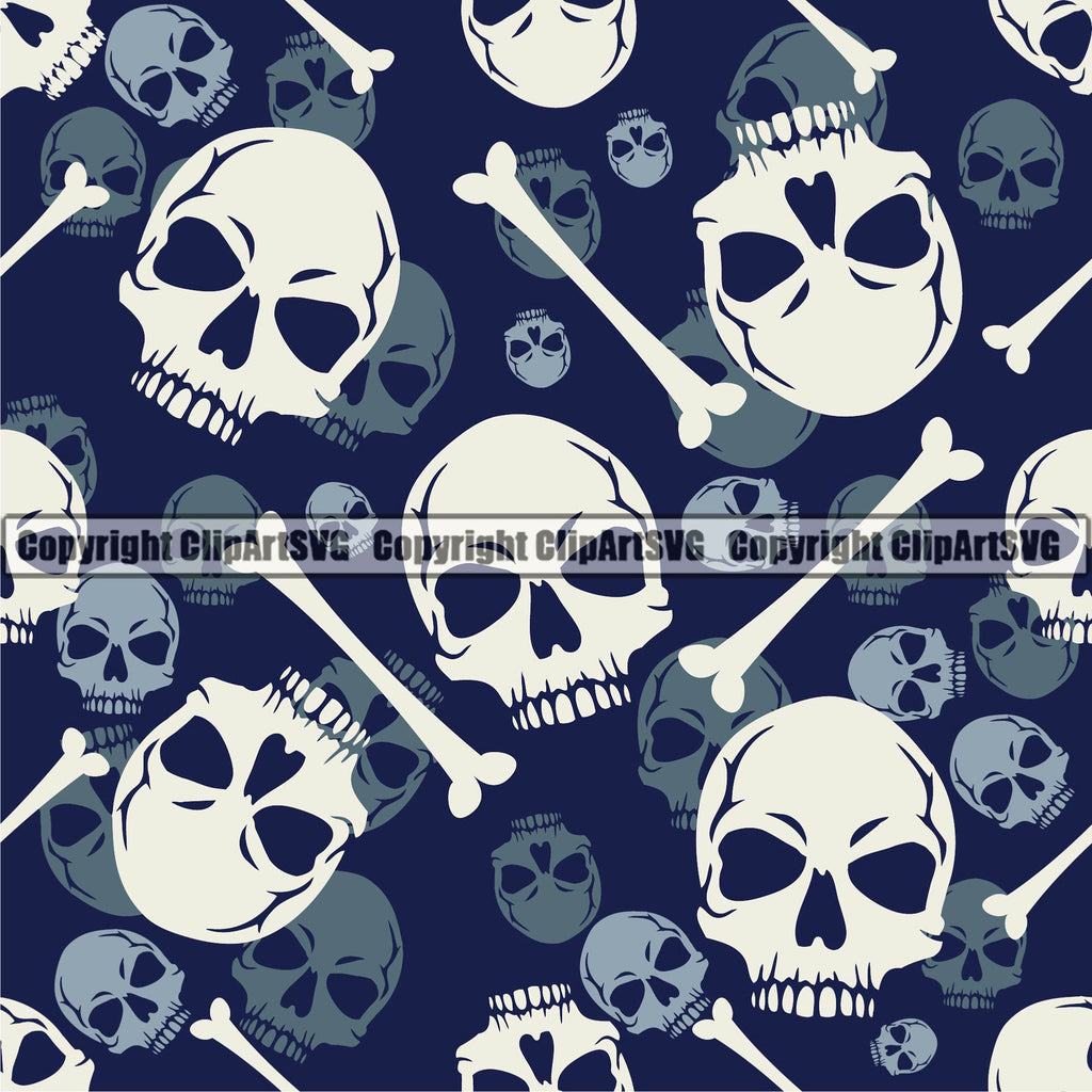 Scary Skull Skeleton Camo Camuflage Seamless Pattern Print Crossbones White And Navy Camouflage Jungle War Wrap Cover Graphic Design Decor Logo