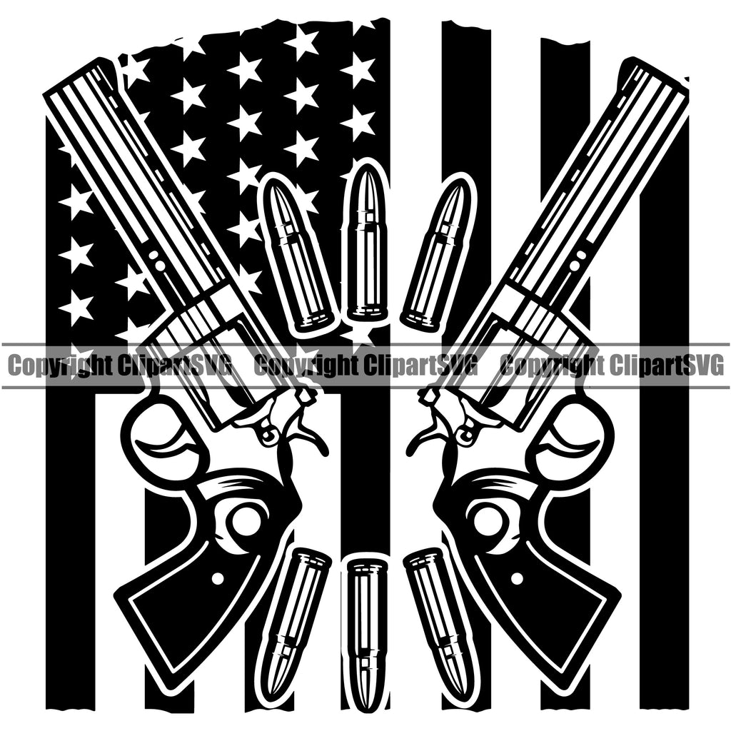 USA Flag Gun Weapon Rights United States America 2nd Amendment Double Pistol With Bullet Under Flag Design Element American Military Army Art Design Logo Clipart SVG