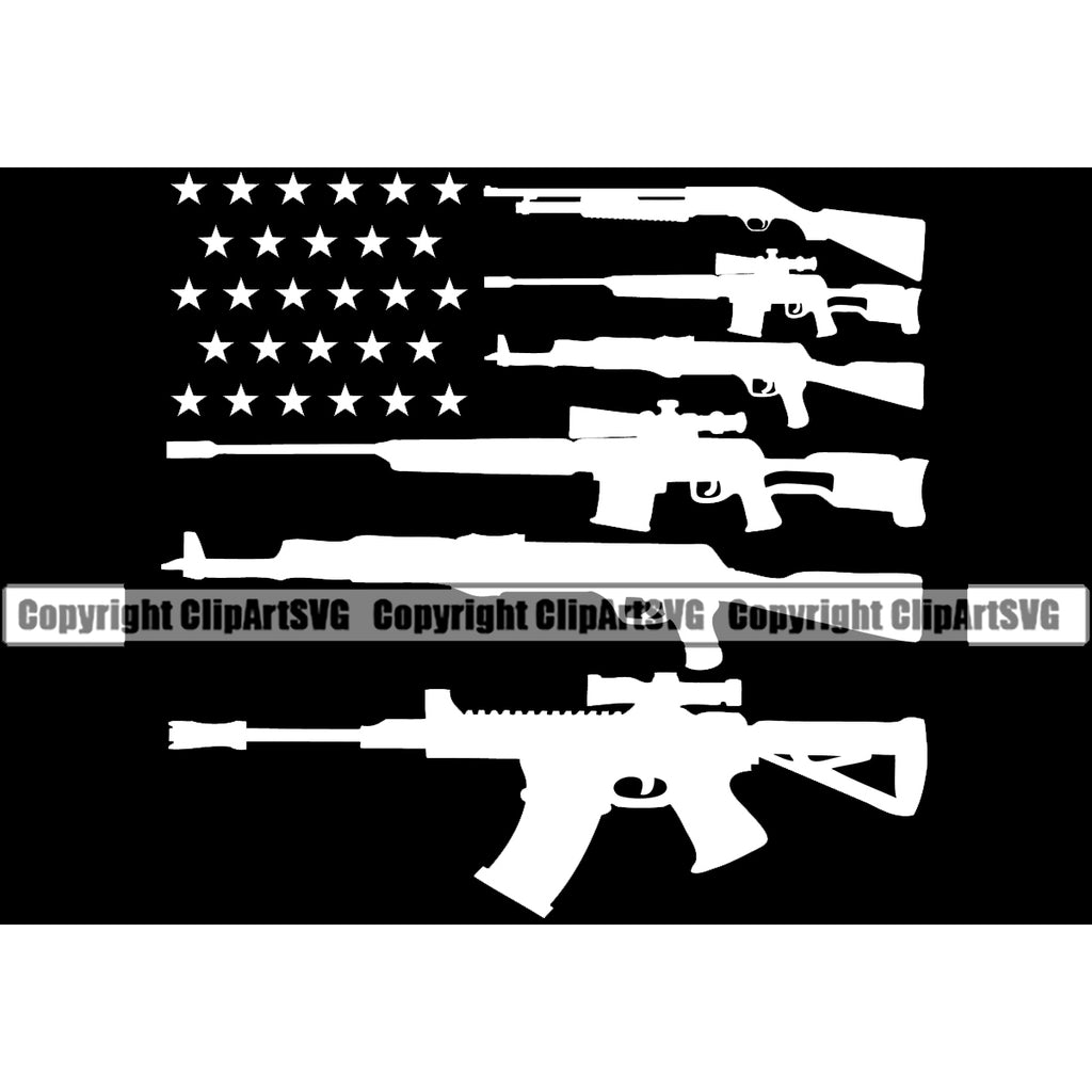 USA Flag Machine Gun Rifle Stripes Weapon Rights United States America 2nd Amendment Gun Collection Design Element Black Background American Military Army Art Design Logo Clipart SVG