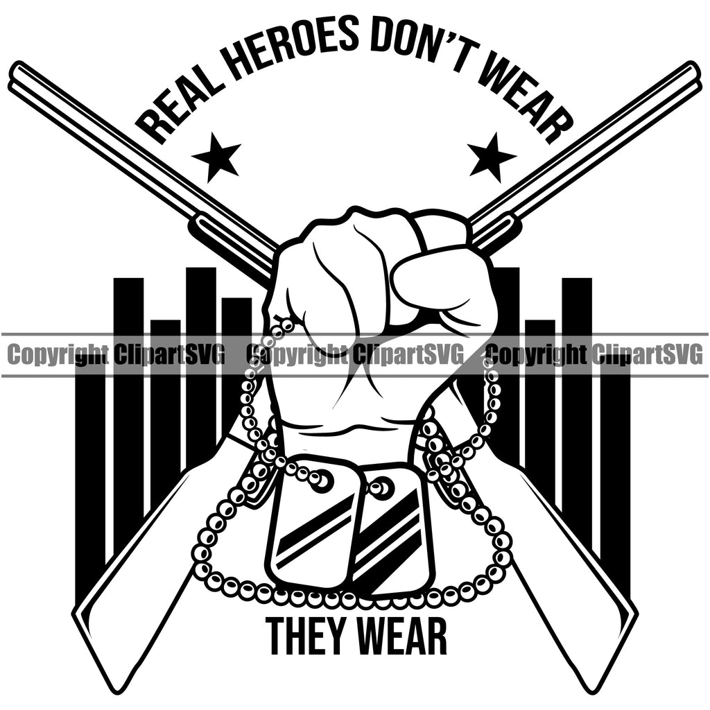 USA Flag Gun Weapon Rights United States Soldier America Real Heroes Don't Wear Gun Quote Text Design Element 2nd Amendment American Military Army Art Design Logo Clipart SVG