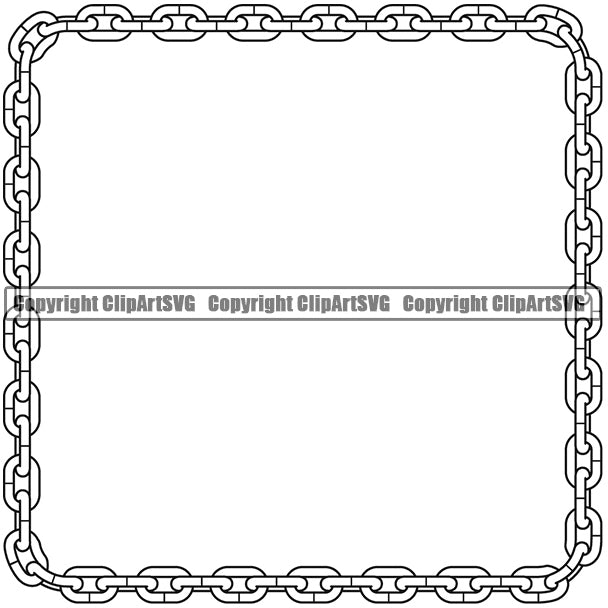 Metal Chain Link Square Design Element White Color Iron Connection Connect Steel Safety Protection Security Strength Strong Textile Industry Concept Background Border Outline Sign Line Art Company Logo Clipart SVG